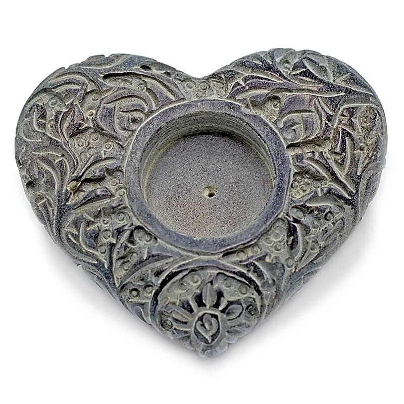 Hartvorm kaars- en wierookhouder zeepsteen grijs